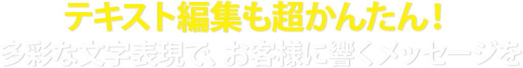 入力した文字の編集も、シンプルに行えます。文字の表現を少し変えるだけでも、読み手に与える印象は、まったく異なります。ポイントになる部分の文字の表現を変え、強調することにより、より強いメッセージとして、読み手の記憶に残すことができます。