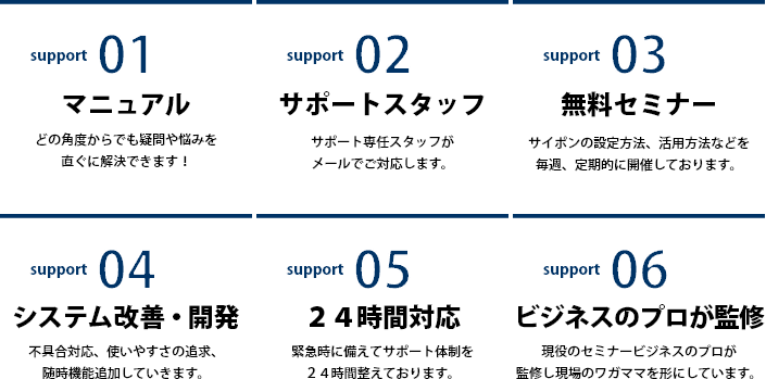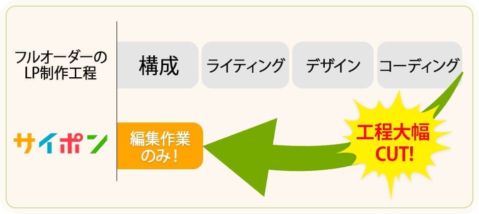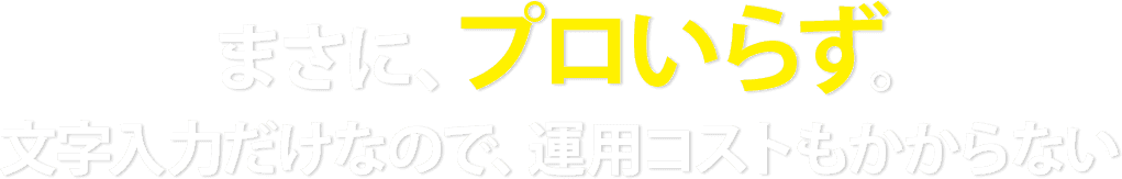 サイトの新規作成はもちろんのこと、サイト公開後の運用コストも、長期的に運用すると大きな金額になります。サイポンは、文字入力だけなので、修正や、微調整なども、一切プロの手を必要とせず、運用コストもまったく気にする必要はなくなります。